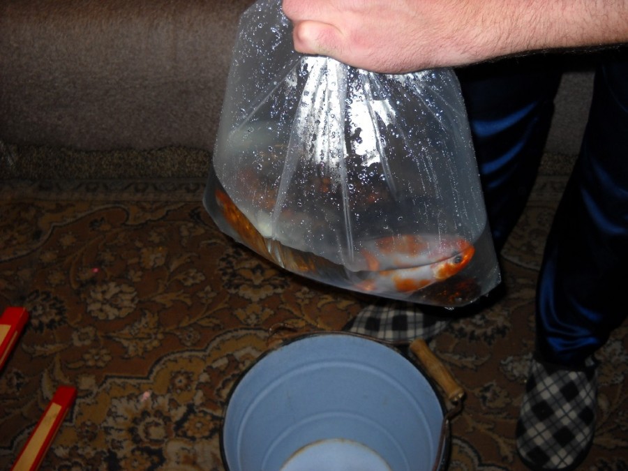 Если рыба куплена в зоомагазине или на рынке и при этом выловлена из товарного аквариума, то вода в пакете, в котором Вы привезете рыбу домой, скорее всего, будет пресной. Если же Вы берете рыб еще в транспортировочных пакетах, упакованных поставщиком, то очень часто бывает, что вода в таких пакетах подсолена. Это значит, что рыбе может, мягко говоря, не понравиться, если ее одним махом перевести в пресную воду. Да и в любом случае азиатская золотая рыбка – практически тот же "дикарь", поэтому переводить ее в новую для нее воду нужно очень постепенно, соблюдая все меры предосторожности.
