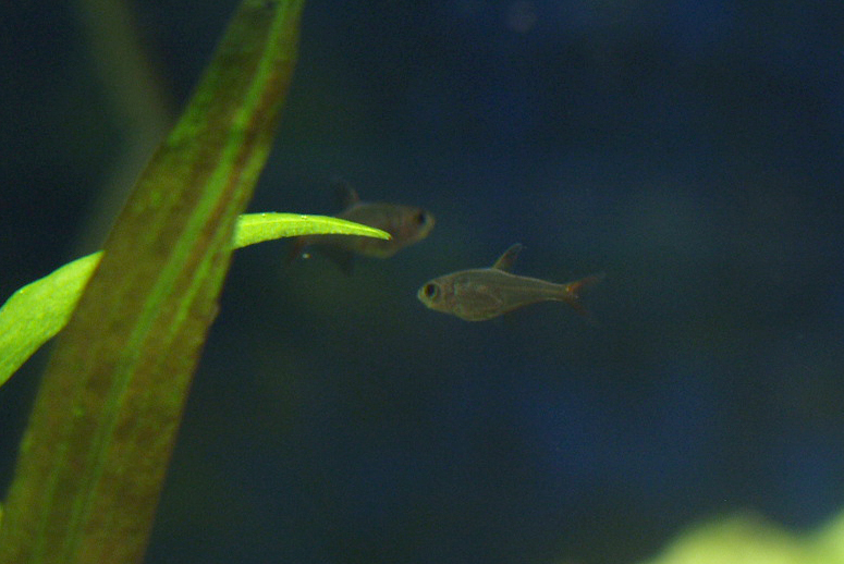 Малек сапфировой тетры (Hyphessobrycon equadoriensis) в общем аквариуме.